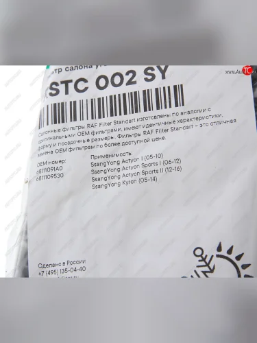 | Наименование | Фильтр воздушный салона SSANGYONG Actyon (06-) Kyron (05-) Actyon Sports (06-) (2шт.) RAF FILTER RAF FILTER rstc002sy в Нижнем Тагиле Свердловской области |