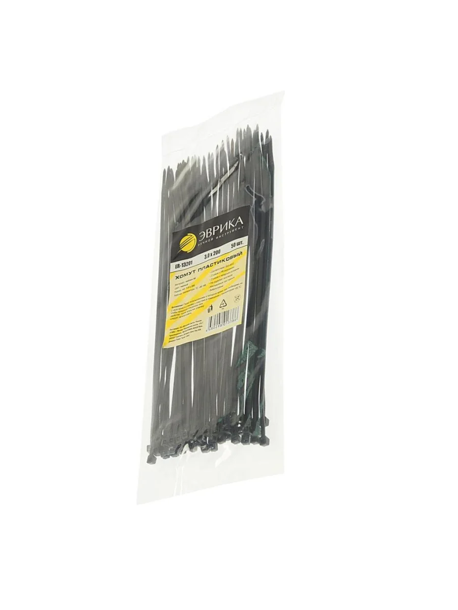 Хомут-стяжка 200х3.0 пластик черный (50шт.) ЭВРИКА ЭВРИКА er-13201 в Нижнем Тагиле Свердловской области