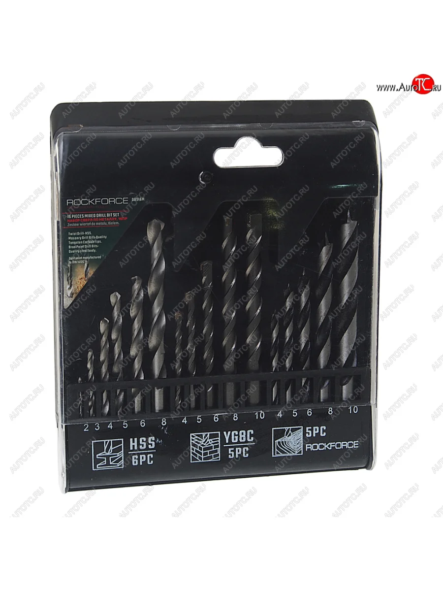 Набор сверл: мет. 2.0-6.0 8.0мм;бет. 4.0-6.0 8.0 10.0мм;дер. 4.0-6.0 8.0 10.0мм (16шт.) ROCKFORCE ROCKFORCE rf-dbs16m в Нижнем Тагиле Свердловской области